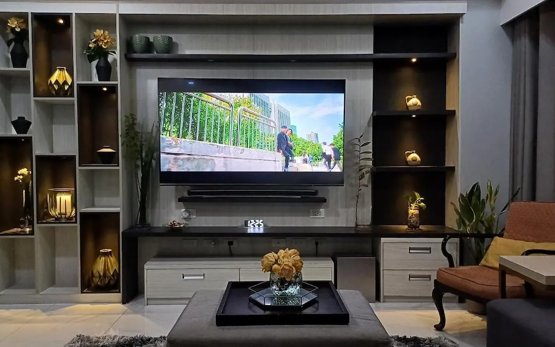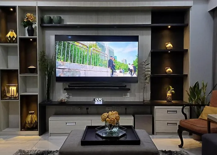ベッドルーム2室の1 Master Br With Full Bathroom And Jet Tub Plus 2Nd Br With Full Bathroom Elegant Fully Furnished With Hotel Feels マニラ市は、マニラ南墓地から歩いて25分くらいに位置し、プールを提供しています。 ビジネスやレジャーのお客様のニーズに合わせて、WiFiを提供しています。